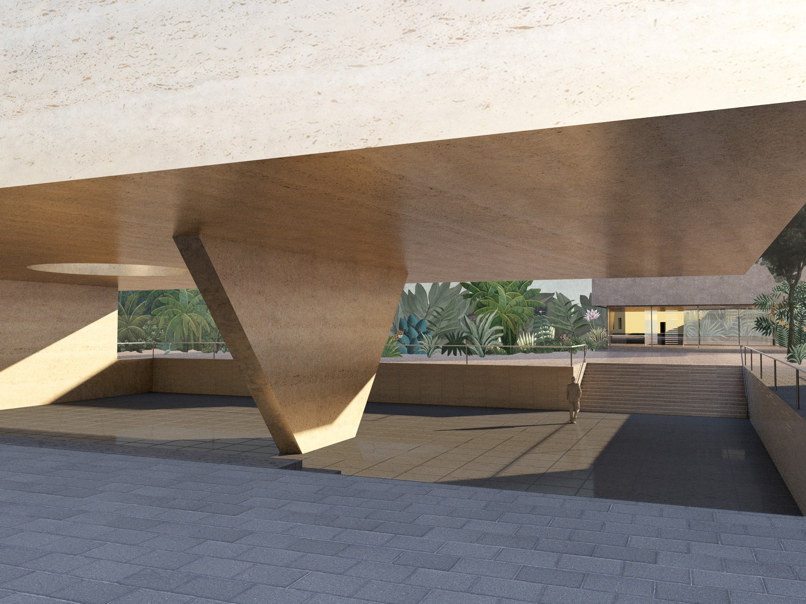 Hierfür wird im Entwurf eine innovative, permeable Schnittstelle zwischen dem Campus der Kunsthochschule und dem öffentlichen Raum formuliert, die Anknüpfungspunkte und Austauschmöglichkeiten generiert. Durch gezielte Eingriffe im Bestand wird der vordere Teil des Grundstücks räumlich und funktional als Teil der Stadt wahrnehmbar, während der hintere Teil des Geländes durch städtebauliche Schwellensituationen abgesetzt wird. Die ehemalige Brachfläche verwandelt sich hier in einen jungleartigen Garten mit Atelierhäusern für die Kunstschaffenden.