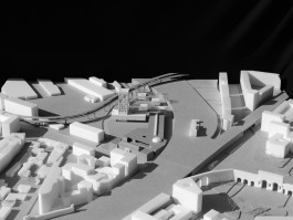 Der Entwurf transformiert die vormals geschlossene städtebauliche Situation der alten Zollanlagen in eine offene Raumabfolge, die das Gelände an die Stadt anbindet und als öffentlichen Freiraum artikuliert. Nach dem Konzept der Raumabfolge findet eine graduelle Abstufung der Öffentlichkeit über die Länge des Grundstücks hinweg statt. So kann eine starke, räumliche und programmatische Beziehung von Öffentlichkeit und Hochschule aufgebaut werden.