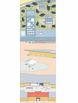 Die Abschlussarbeit entwickelt ein Alternativszenario für die Zukunft des Zollbahnhofs, das die Entwicklungen der letzten Jahre miteinbezieht und auf lokale Strukturen und Gemeinschaften, sowie auf die aktuelle, bauliche Bestandssituation Bezug nimmt. Der Ort soll mit Blick auf die Interimsnutzungen als Kulturstandort und offene Kunsthochschule nachgenutzt werden.
