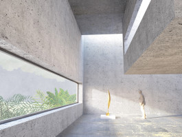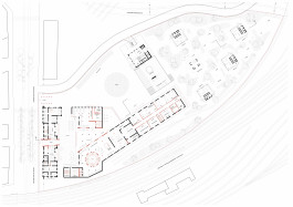 Hierfür wird im Entwurf eine innovative, permeable Schnittstelle zwischen dem Campus der Kunsthochschule und dem öffentlichen Raum formuliert, die Anknüpfungspunkte und Austauschmöglichkeiten generiert. Durch gezielte Eingriffe im Bestand wird der vordere Teil des Grundstücks räumlich und funktional als Teil der Stadt wahrnehmbar, während der hintere Teil des Geländes durch städtebauliche Schwellensituationen abgesetzt wird. Die ehemalige Brachfläche verwandelt sich hier in einen jungleartigen Garten mit Atelierhäusern für die Kunstschaffenden.